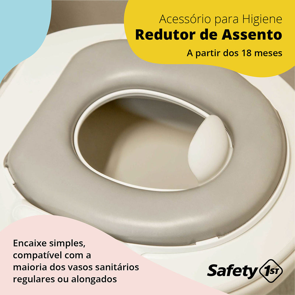 A fase do desfralde exige muita atenção, paciência e persistência. O Redutor de Assento Safety 1st é ideal para acostumar a criança ao uso do vaso sanitário de forma independente. Possui almofada acolchoada, facilmente removível, que proporciona mais conforto e praticidade na limpeza. As alças laterais para a criança segurar dão mais segurança. Possui base com antiderrapantes, alça para pendurar, facilitando o armazenamento e proteção frontal contra respingos.