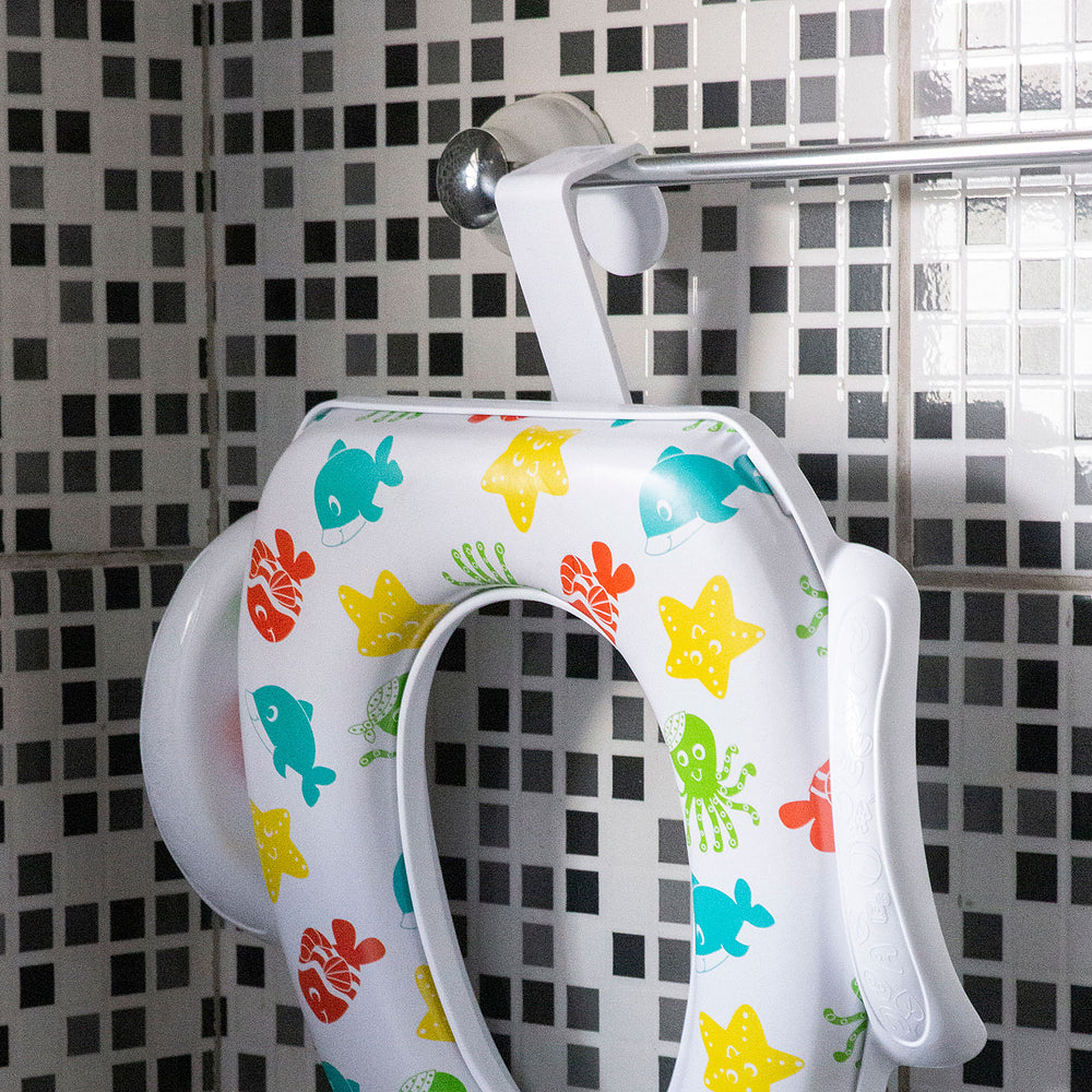 Acessório perfeito para auxiliar e incentivar a criança a usar o vaso sanitário, de maneira confortável e segura.