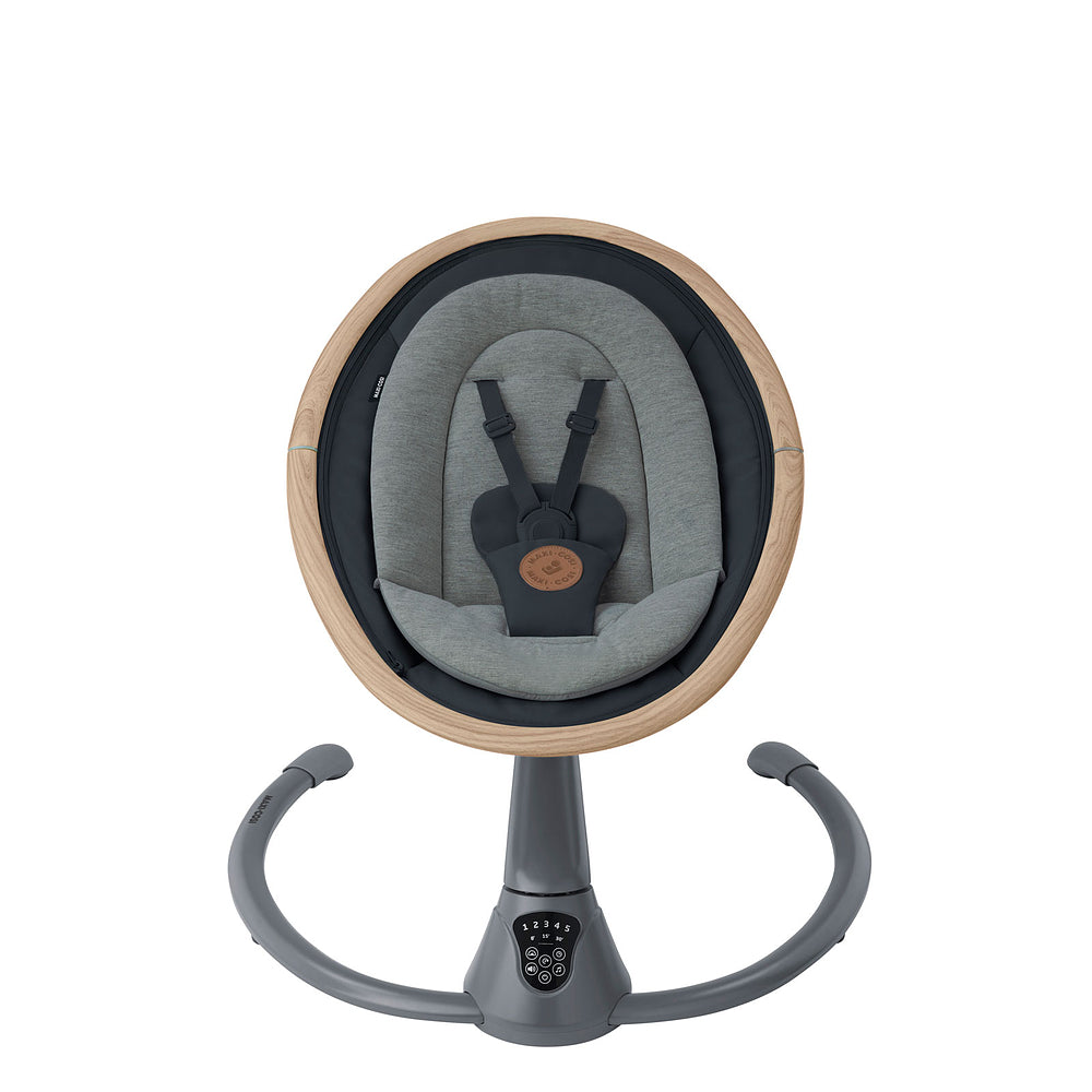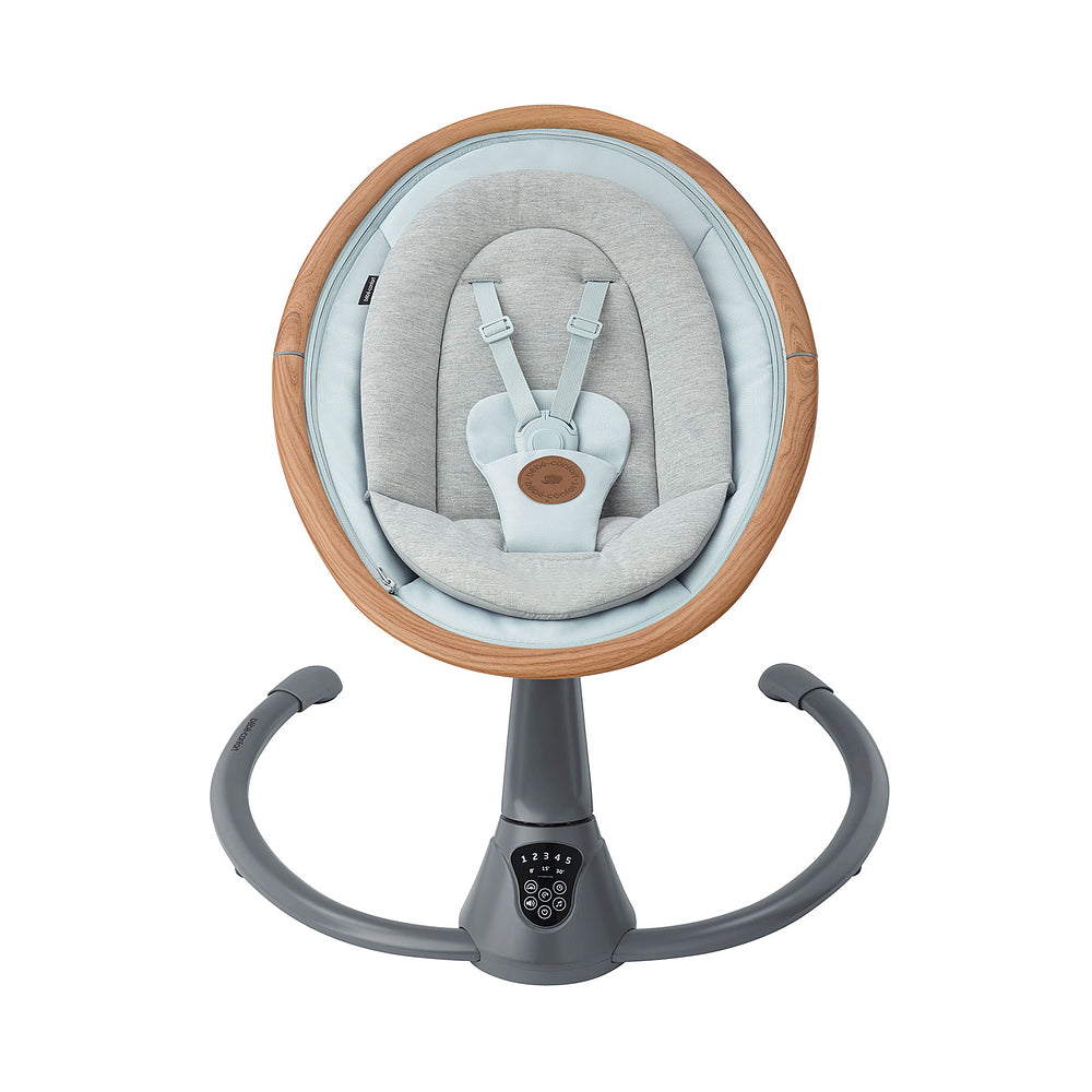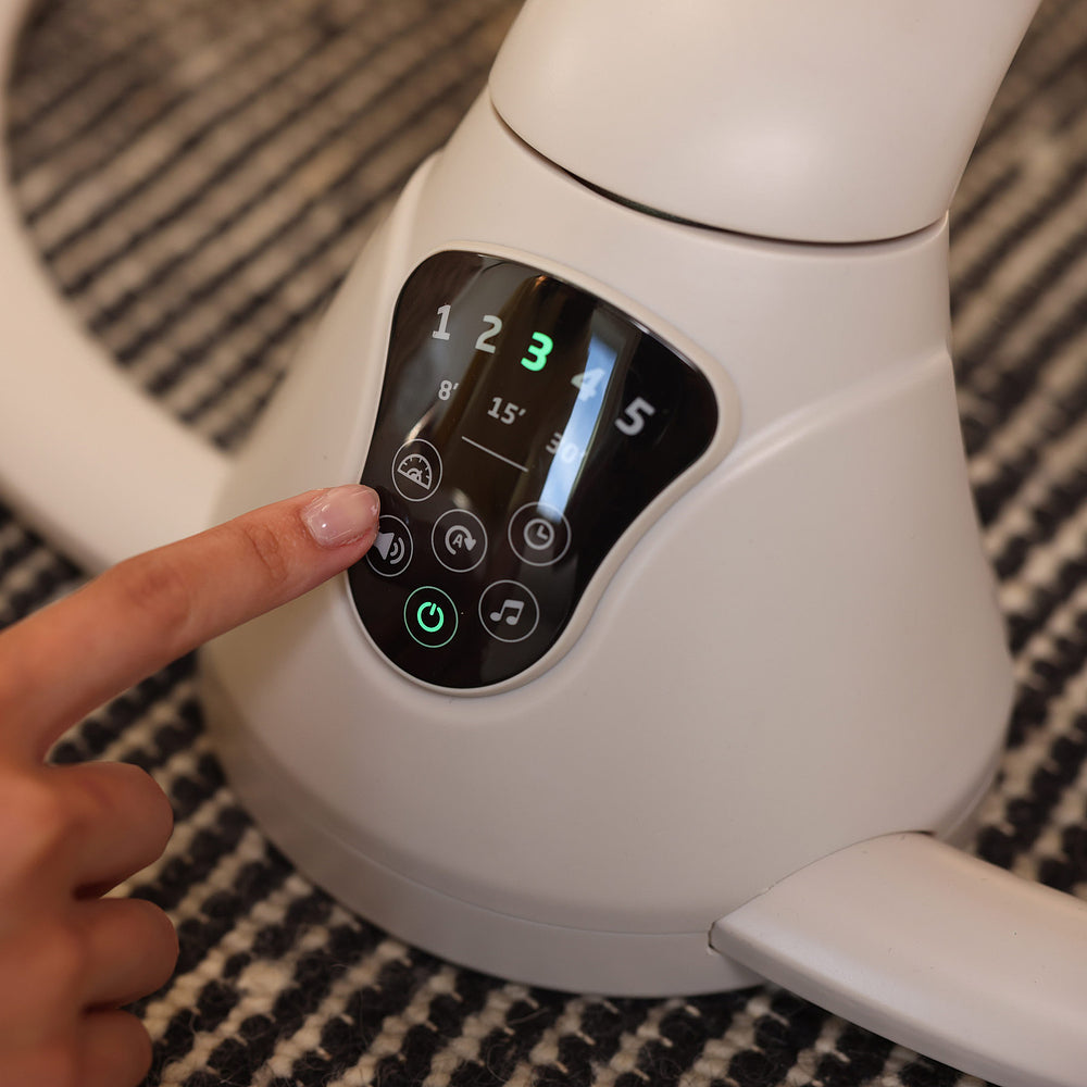 Com um painel eletrônico touchscreen fácil de usar, a cadeirinha de descanso Cassia possui diversas funções, como duas direções e 5 velocidades de balanço para encontrar o ritmo perfeito para o bebê.